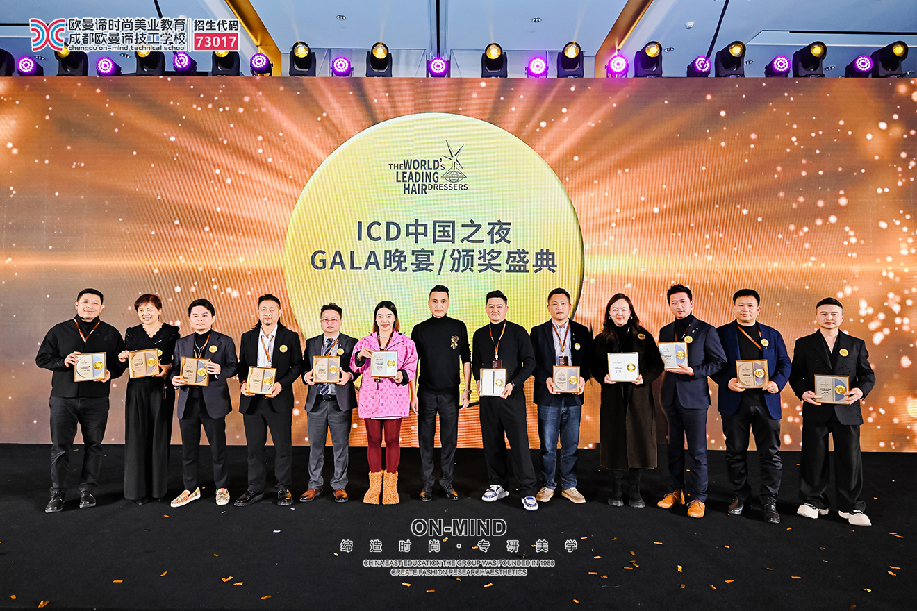 盛典上,欧曼谛时尚美业教育荣获了“ICD中国2025年度品质教育品牌”的荣誉称号,学校党支部书记陈沁代表上台接牌,这是行业对学校长期以来在教学规范、人才培养质量与专业贡献上的持续肯定。
