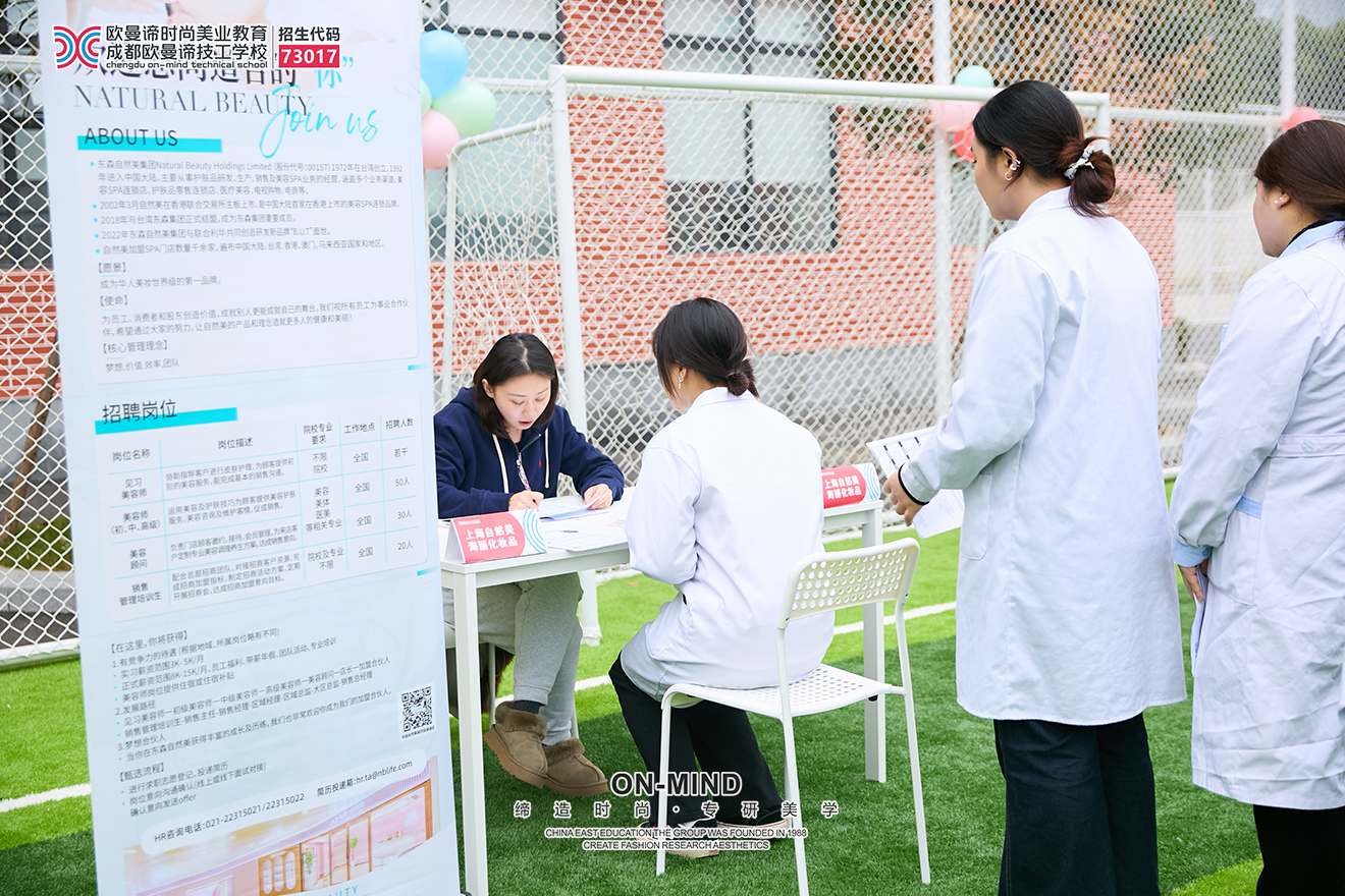 为拓宽学生就业渠道,搭建优质供需平台,一场以“青春逐美,职通未来”为主题的校企双选会在学校同安校区圆满举办。本次招聘会共吸引了15家美业相关连锁企业到场,涵盖了美容、美发、化妆、美甲等多个领域,为学校毕业生提供了丰富对口的就业岗位。