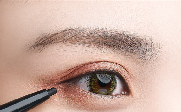 STEP3:眼线胶笔画出全包眼线,起到放大双眼的作用;如果是新手,可以先简单沿眼尾拖出眼线,熟练以后再化全包眼线;