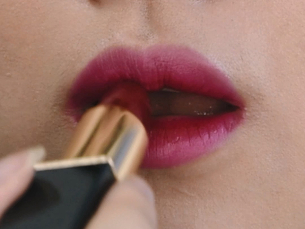 Step11:口红整体用偏冷调的,第一层画出咬唇形状,为了更有层次感,再用更深一点的颜色加深唇中。